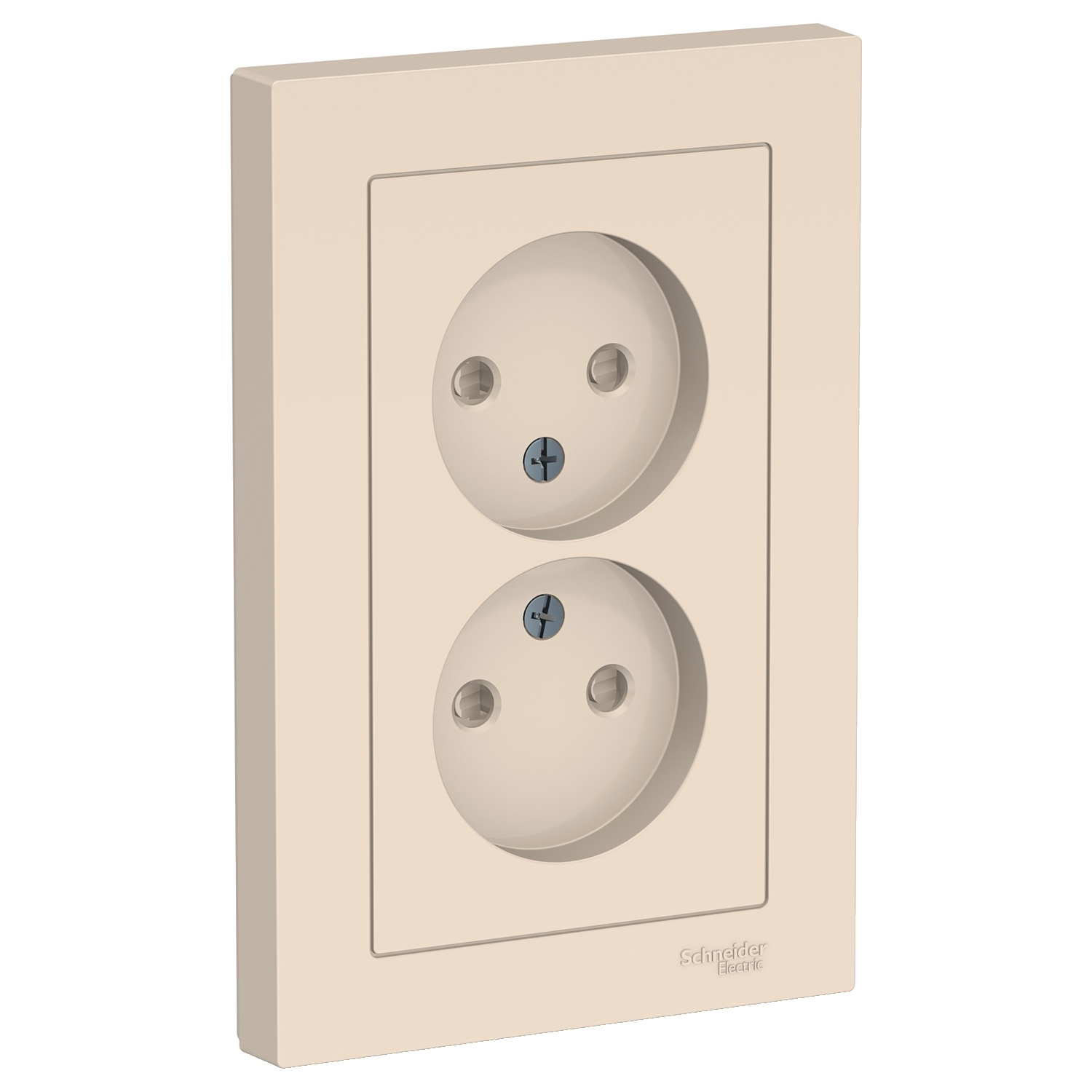 Розетка Schneider Electric ATLASDESIGN, скрытый монтаж, 2-х постовая, со шторками, 16A, в сборе, IP20, бежевый (ATN000222)