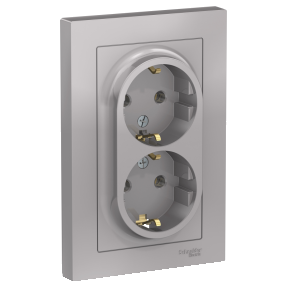 Розетка Schneider Electric ATLASDESIGN, скрытый монтаж, 2-х постовая, с з/к, 16A, в сборе, IP20, алюминий (ATN000324)
