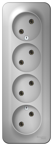 Розетка Schneider Electric BLNRA000413 4-я б/з без шторок 16А, 250В, изолир. пластина Алюминий наруж, BLNRA000413