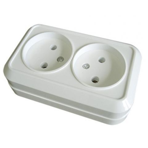 Розетка TDM Ладога, открытый монтаж, 2-х постовая, 10A, в сборе, IP20, белый (SQ1801-0017)