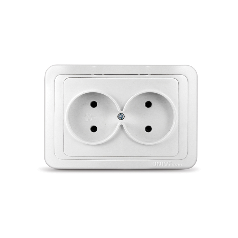 Розетка UNIVersal Валери В0102, скрытый монтаж, 2-х постовая, 16A, в сборе, IP20, белый (В0102), В0102