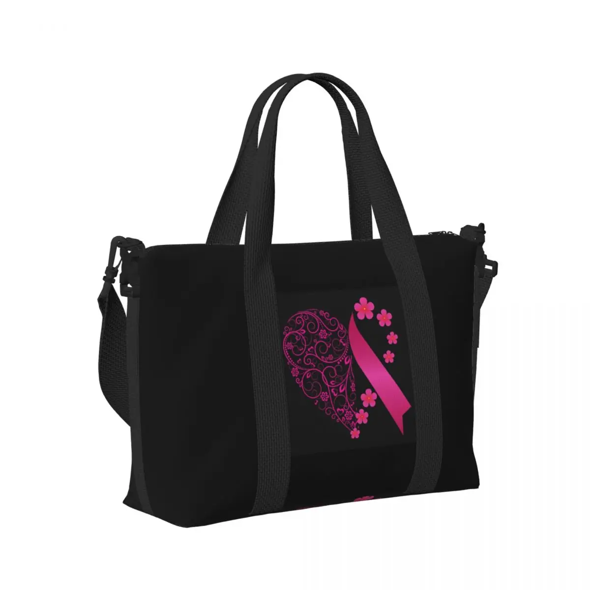 Розовая лента с цветочным принтом для осведомленности о раке молочной железы, пляжная дорожная сумка, большая вместительная сумка-тоут для спортзала, женская дорожная сумка для покупок