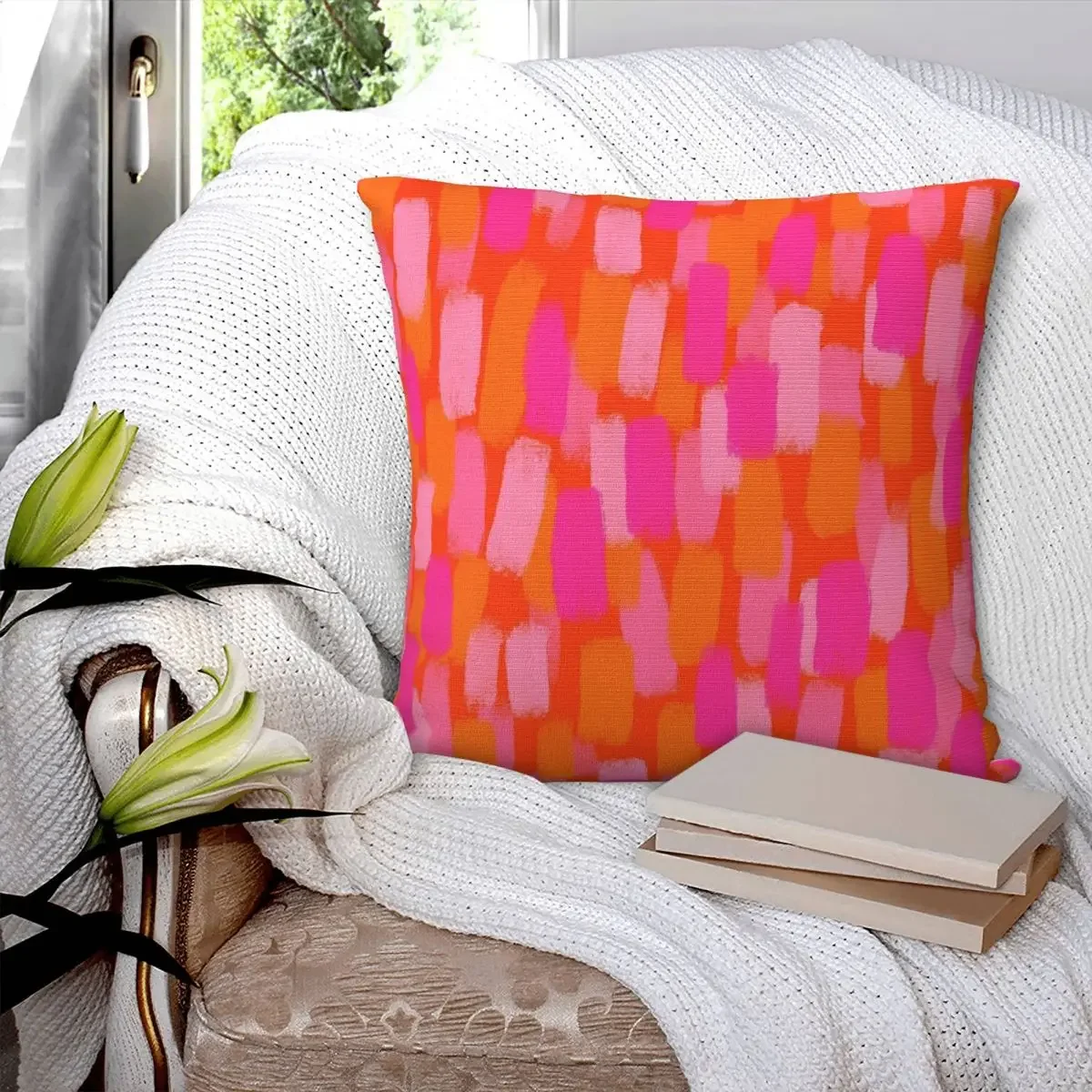 Розовая и оранжевая квадратная наволочка, наволочка из полиэстера, удобный декоративный чехол для дивана