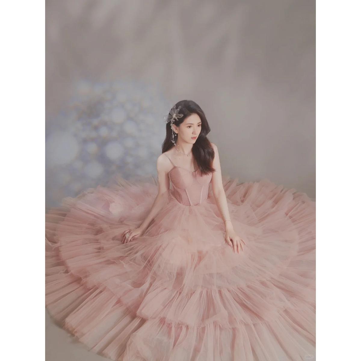 Розовое вечернее платье из пушистой пряжи высокого класса на день рождения женское 2025 новое церемония совершеннолетия публичная юбка нишевый легкий люкс S розовый