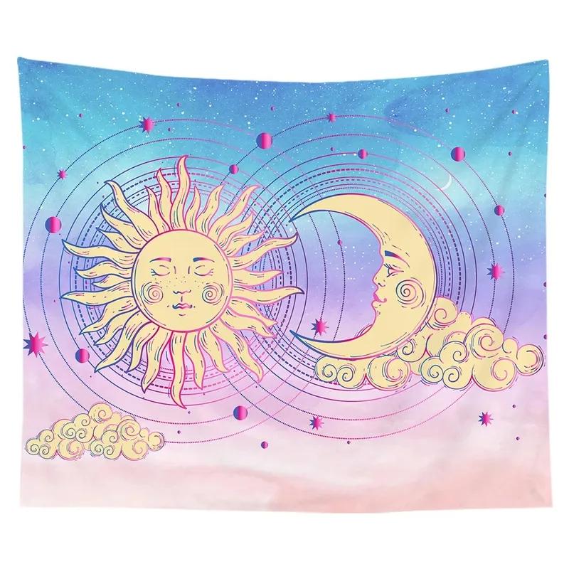 Розовое солнце и луна ретро подвесная ткань украшение на стену для дома гобелен офис гостиная гобелен 100x75cm
