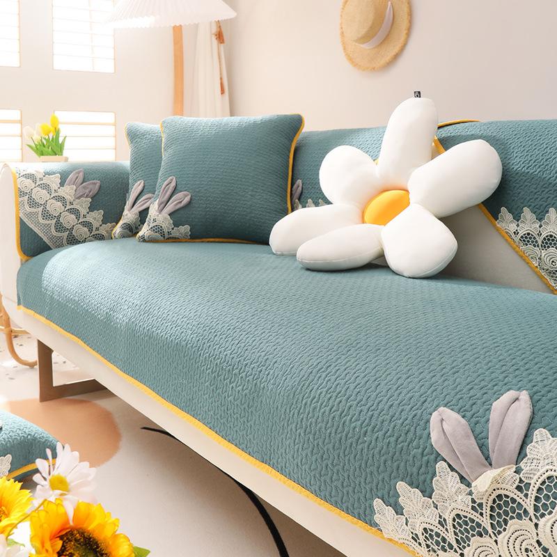 Розовые милые кроличьи уши, диванная подушка, маленькая свежая хлопковая нескользящая четырехсезонная современная простая крышка, зимний стиль 70*70cm