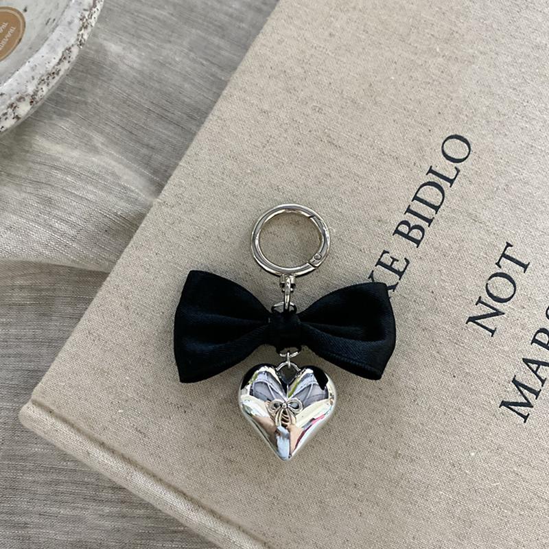 Розовый брелок с бантом Ins Стиль Серебряное сердце Подвеска для телефона Чехол для наушников Очаровательная сумка Декор Кольцо для ключей от автомобиля чёрный