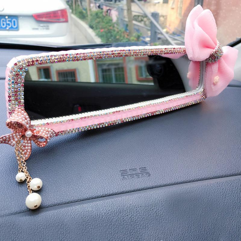 Розовый горный хрусталь, зеркало заднего вида для салона автомобиля, милая бабочка, колокольчики, орнамент, декоративная крышка, аксессуары для заднего зеркала pink mirror