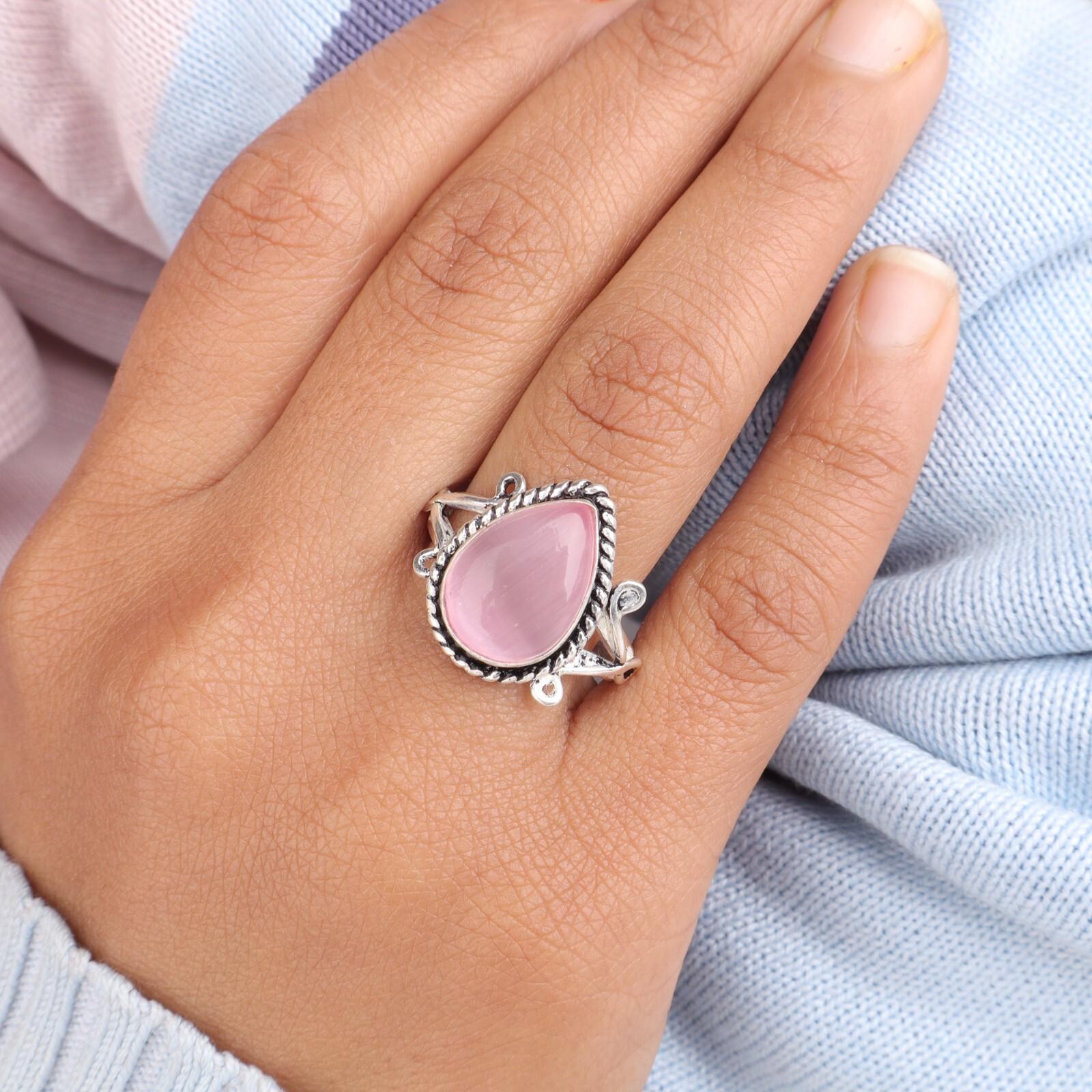 Розовый камень Кошачий глаз 925 Стерлинговое серебро Ювелирное изделие Ручной работы Кольцо Подарок на день рождения RR-57-39 7.5