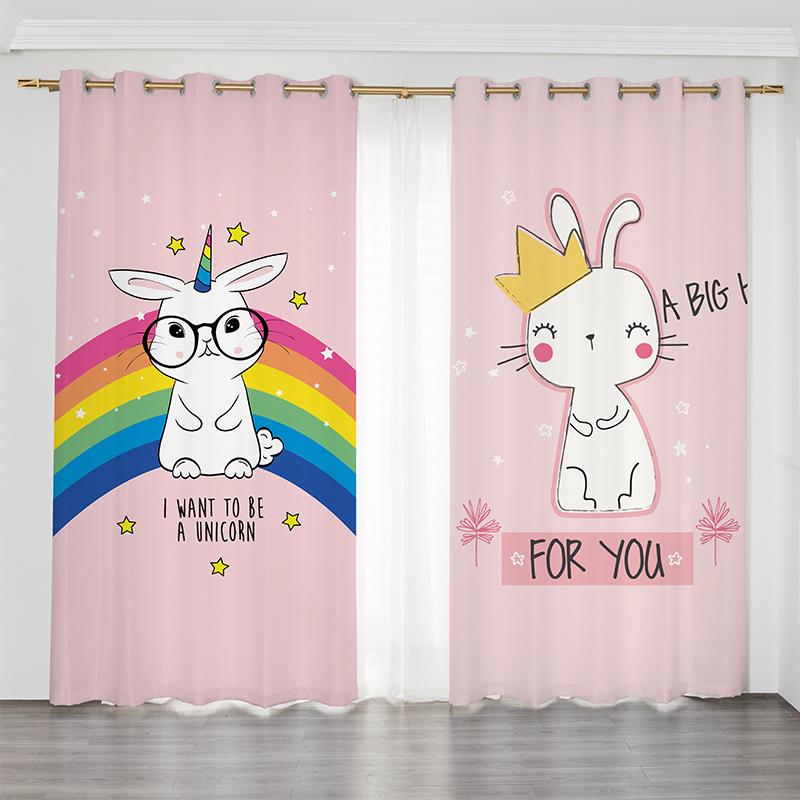 Розовый милый мультфильм кролик обезьяна цифровая печать занавеска для мальчиков девочек детская спальня гостиная окно от пола до потолка 2x50W100H(CM)&hook