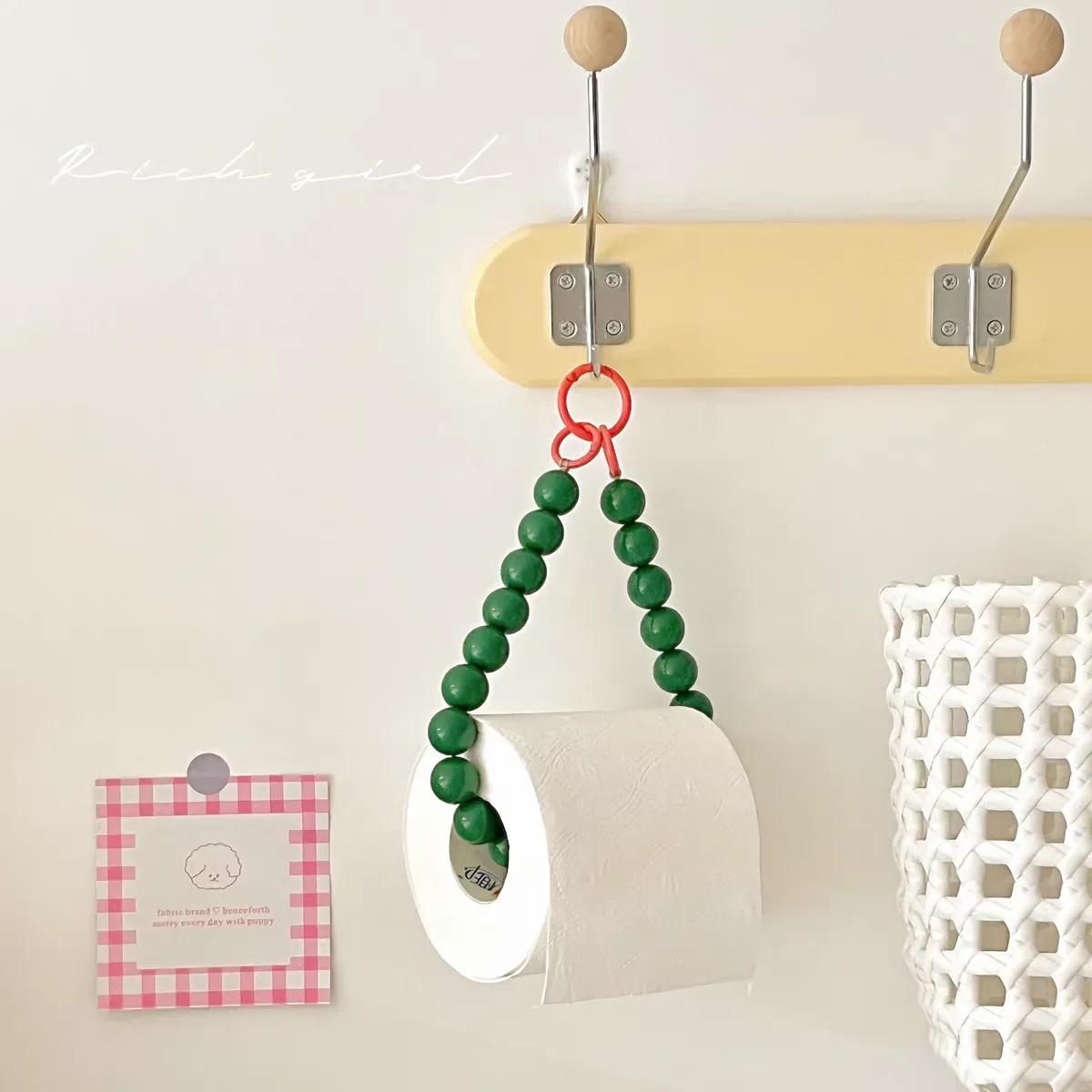 Розовый цвет подвесной держатель для салфеток с бусинами держатель для туалетной бумаги телефонная цепочка домашний органайзер для хранения вещей аксессуары для украшения ванной комнаты