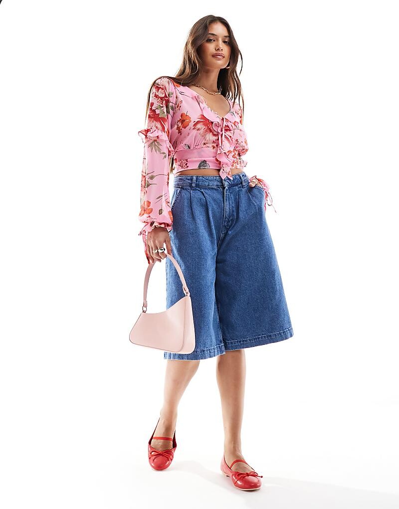 Розовый шифоновый топ Brave Soul 3 с длинными рукавами и рюшами