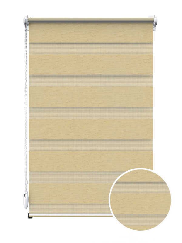 Рулонные шторы “День-Ночь” представляют собой полотно со структурой из повторяющихся полос прозрачной и плотной ткани. Основная особенность от других тканевых ролет - это возможность не только защитить помещение от проникновения солнечных лучей, но и мягко регулировать степень освещенности. Световой поток проникает в помещение сквозь прозрачную вуаль (день) или перекрывается полностью плотной тканью (ночь).