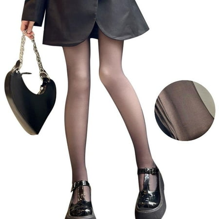 COBBEKO Women Winter Warm Black Tights Elastic Button Waist Double Layer Thick Faux Fleece Lined Fake Translucent Pantyhose