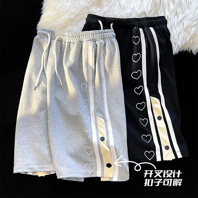 High quality Love Rib Shorts Men's Design Sense Small Popular Casual Sports Capris ins Fashion Summer Loose Straight Pants