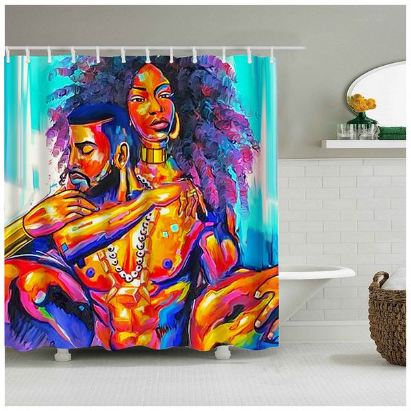 аксессуары для ванной комнаты черный мужчина и женщина с фиолетовыми вьющимися волосами в любви водонепроницаемая ткань занавески для душа з