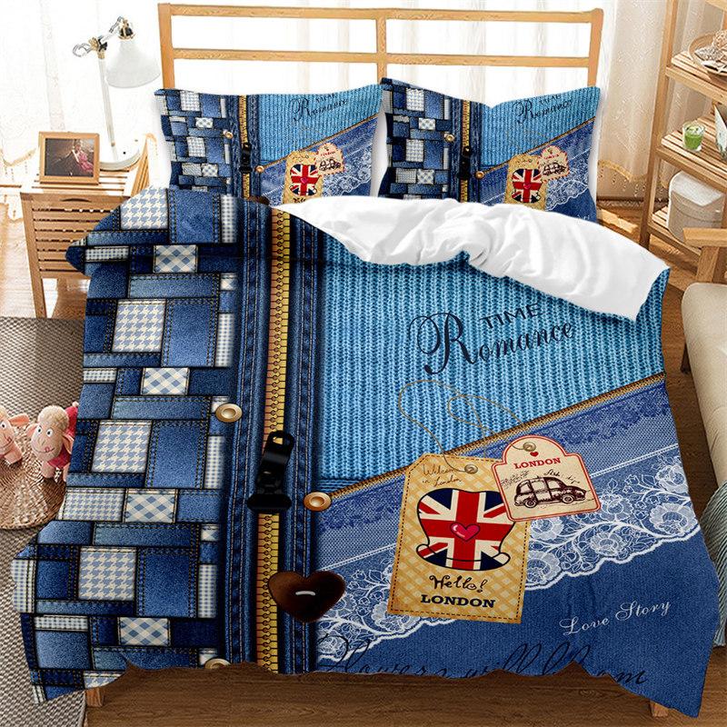 Романтический комплект пододеяльника Карета Пододеяльник Британский стиль Любовь Сердце Мультяшный Полиэстер Постельное белье Комплект Король Королева Полный размер EU single(135x200cm)