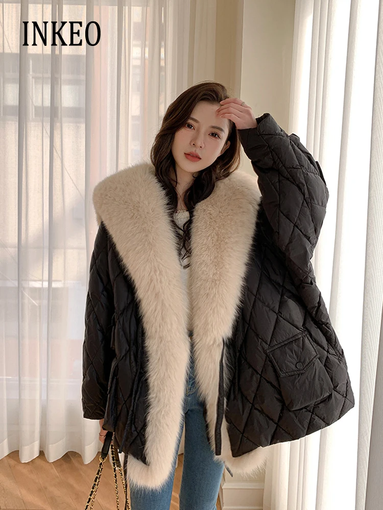 Роскошная большая пуховая куртка с воротником из лисьего меха, женские парки 2023, зимнее дизайнерское теплое пуховое пальто большого размера, женская верхняя одежда INKEO 3O131