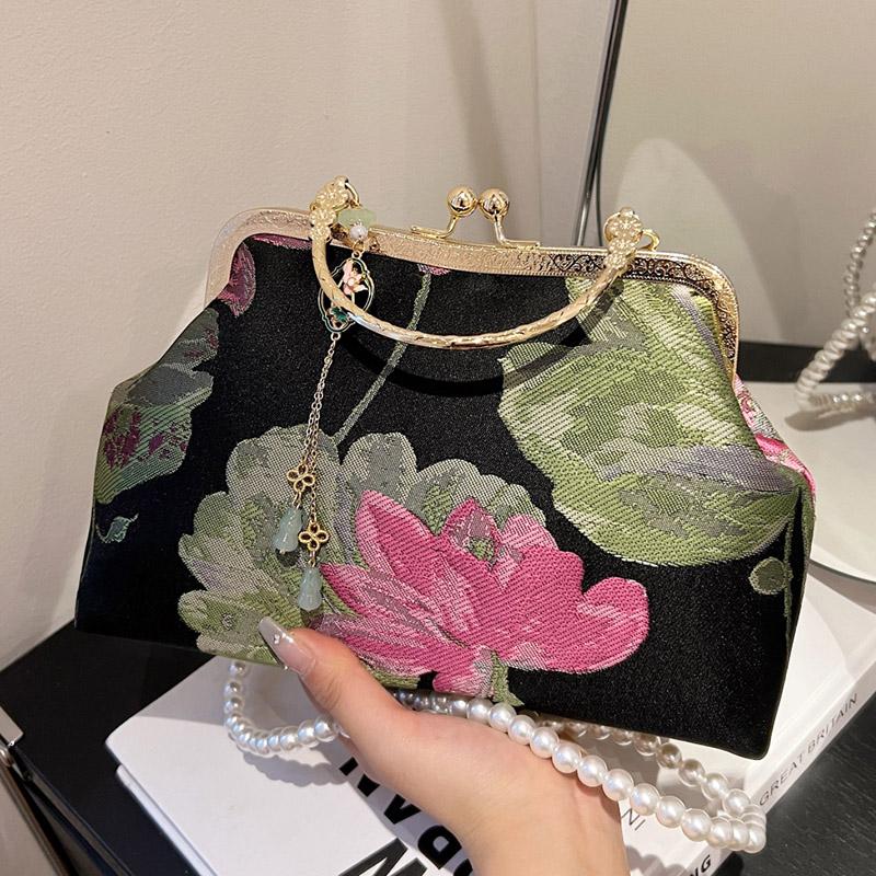Роскошная брендовая сумка через плечо для женщин 2024 года, новая мини-зеленая сумка через плечо с вышитыми кисточками в китайском стиле из шелка и цепочки чёрный