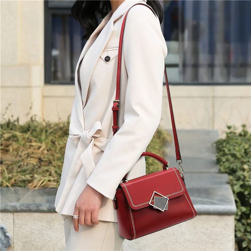 Роскошная брендовая 100% натуральная кожа, повседневная простая металлическая маленькая квадратная сумка-раскладушка, Высококачественная т...