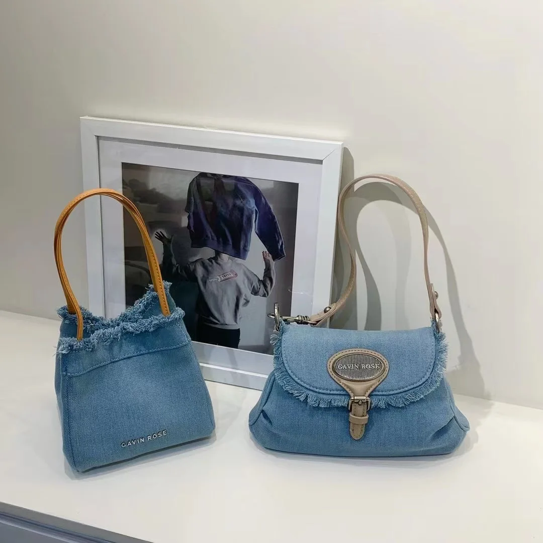 Роскошная джинсовая сумка-мешок светильник под подмышки, новинка 2023, модная французская сумка-мешок для пожилых людей, сумка через плечо для женщин