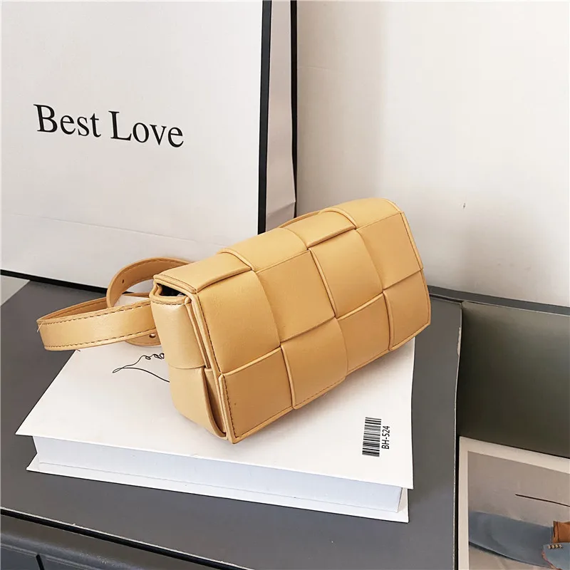 Роскошная дизайнерская женская сумка, однотонная плетеная маленькая квадратная сумочка в клетку, нагрудная сумка с широкополосным ремнем ...