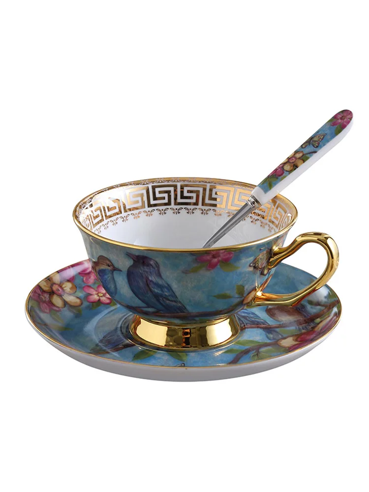 Роскошная золотая кофейная чашка, европейская маленькая чашка для королевского чая в стиле ретро с ложкой с ручкой, винтажная чашка из кост...