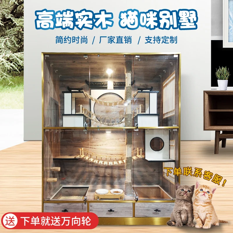 Роскошная кошачья вилла, роскошная кошачья будка, шкаф для кошек из массива дерева, клетка для кошек, домашняя клетка для кошек