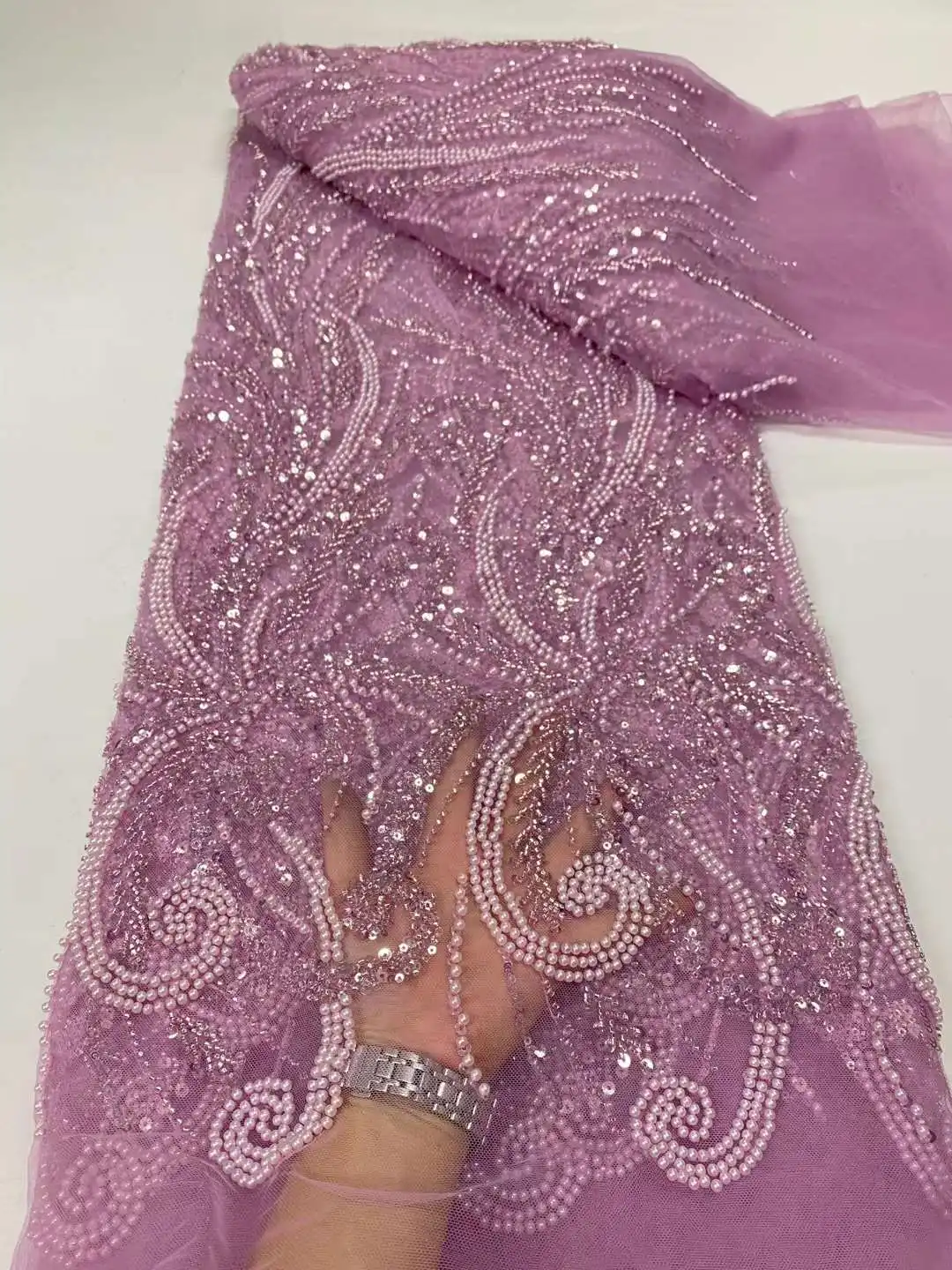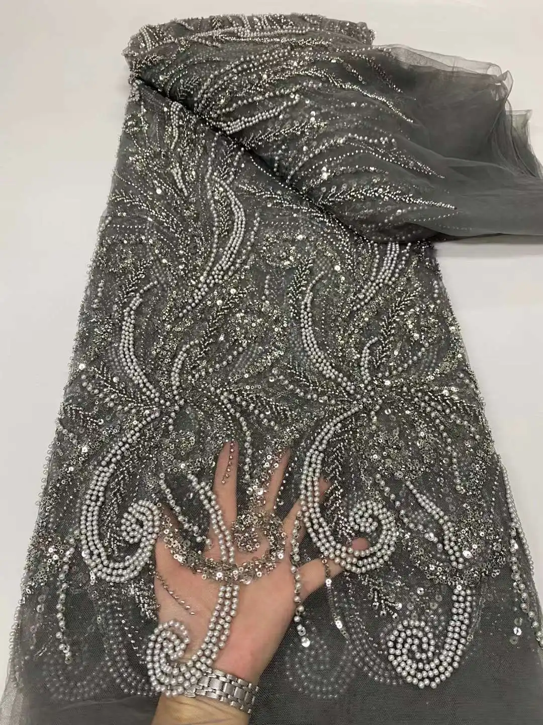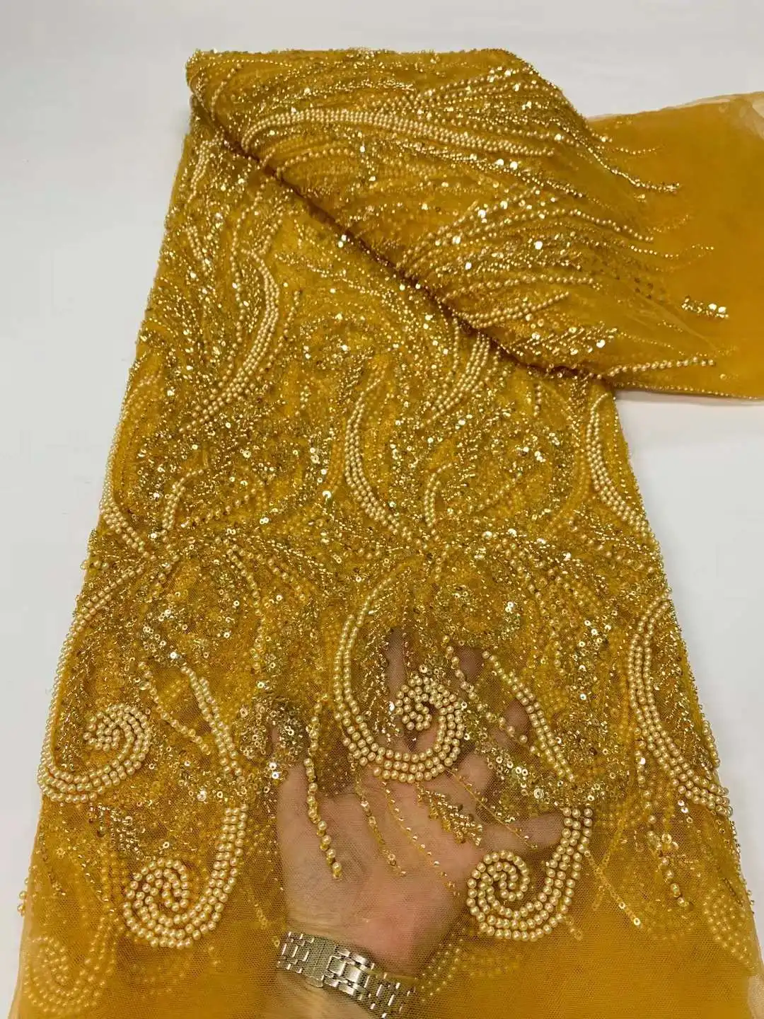 Роскошная кружевная ткань с бусинами, 5 ярдов, ручная золотая вышивка, африканская ткань для шитья
