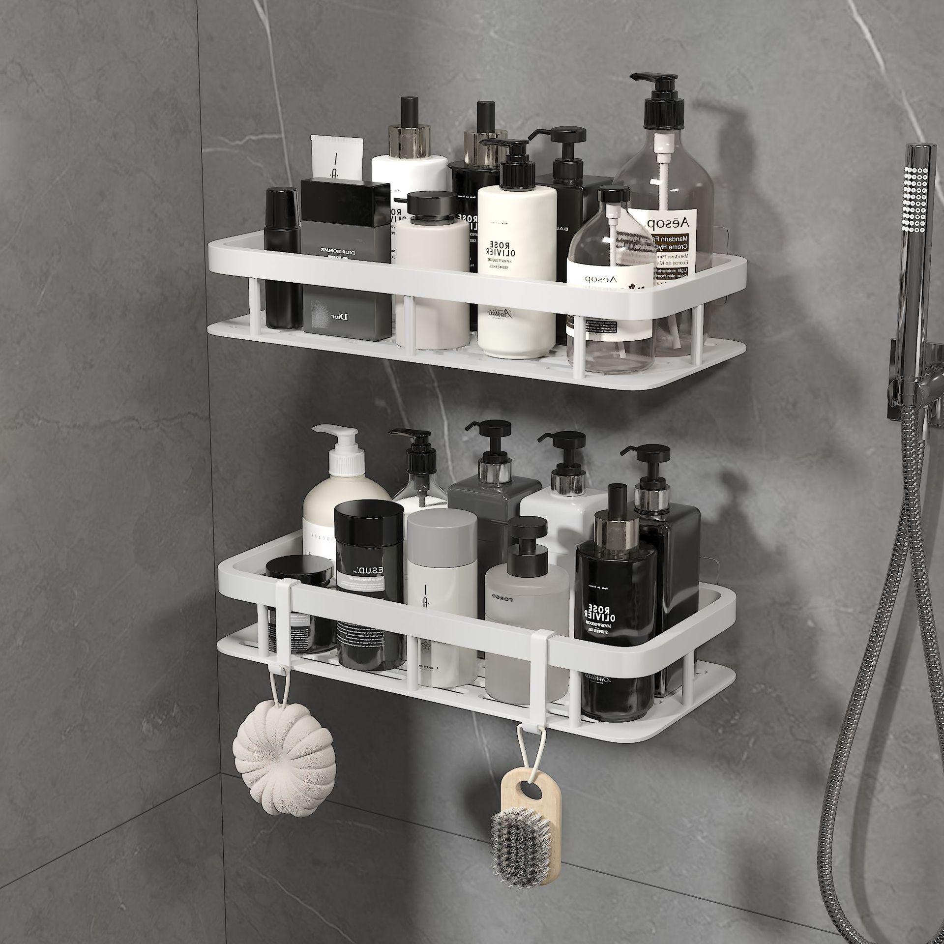 Роскошная просторная и вместительная настенная полка без сверления для ванных комнат и кухонь — простая установка, экономия места, структура из сплава, прочное сцепление белый