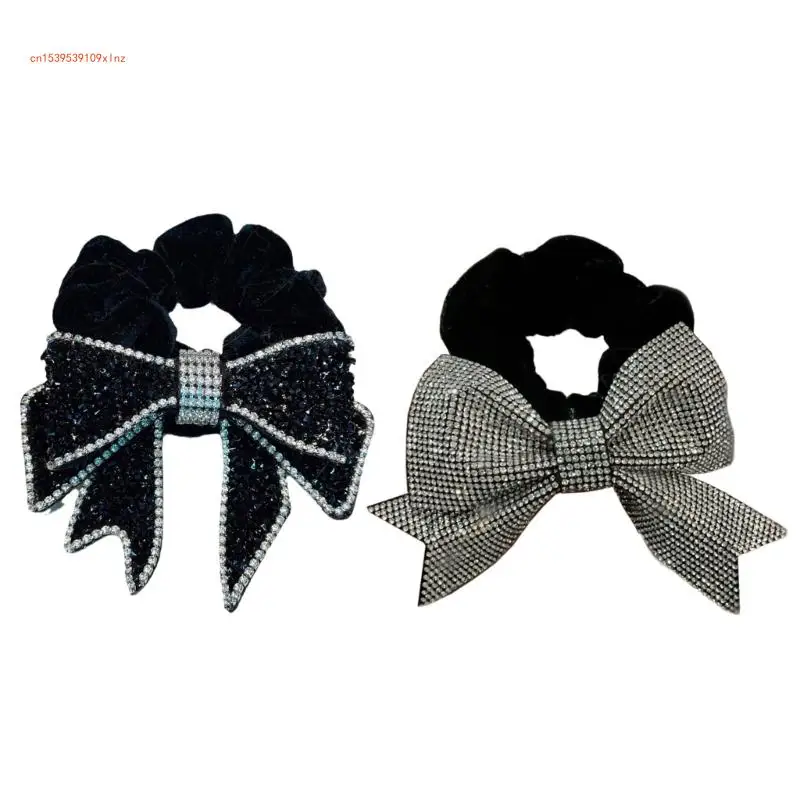 Роскошная резинка для волос со сверкающими стразами, веревка для волос с бантом, плюшевая веревка для волос