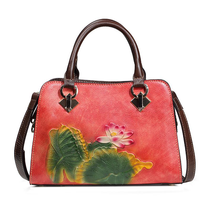 Роскошная сумка Johnature, женские сумки в стиле ретро, сумки из натуральной кожи, сумки ручной работы с тиснением для отдыха, сумки на плечо и через плечо из воловьей кожи красный