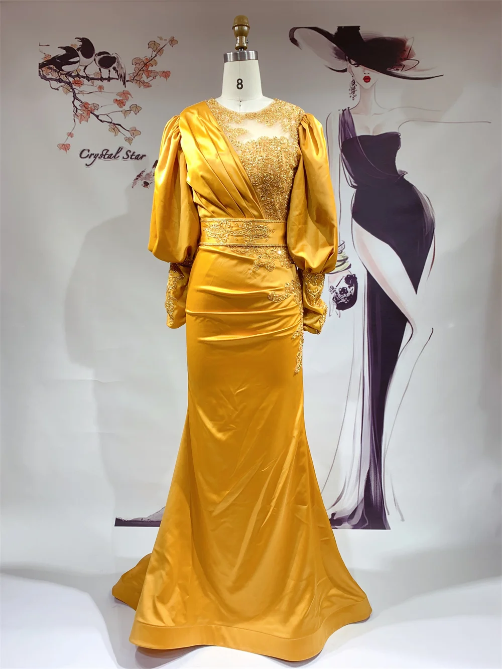 Роскошное атласное платье-Русалка с длинным рукавом, арабские вечерние платья для женщин, свадебные платья с бусинами, юбка-русалка, Дубай