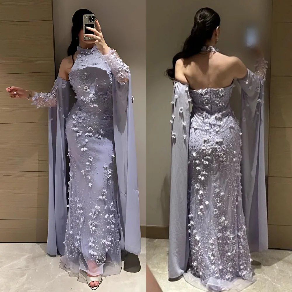 Роскошное вечернее платье по индивидуальному заказу с блестящей аппликацией и лямкой на шее, длинные платья на заказ, элегантная вечеринка, очаровательное