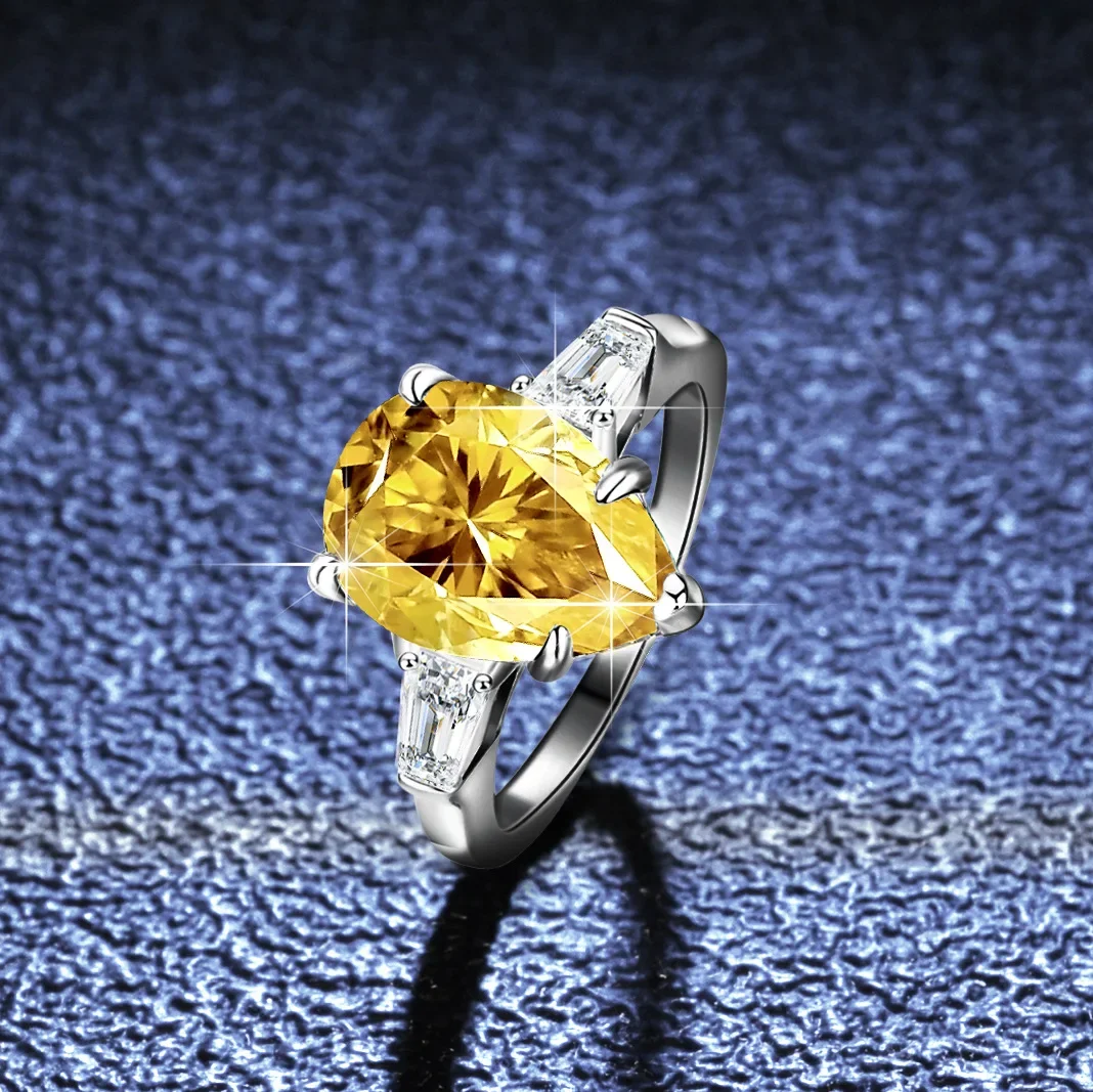 Роскошное женское кольцо с муассанитом из 18-каратного золота в форме грушевидной капли PT950 Платина 4 карата цвет шампанского желтый