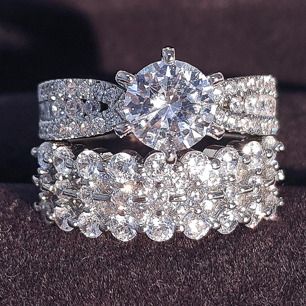Роскошное женское комбинированное кольцо с полным бриллиантовым цирконом и паве-оправой на шести крапанах (модель: r5338-r5544) Size 9 белый