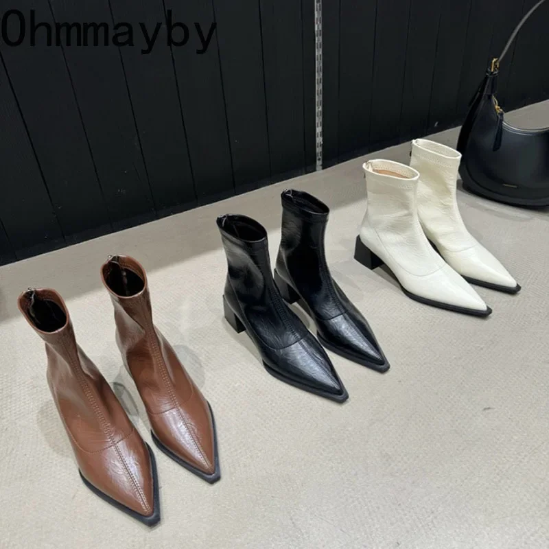Роскошные весенне-осенние женские ботильоны, модные женские короткие ботинки с острым носком, элегантные женские туфли-лодочки на низком квадратном каблуке