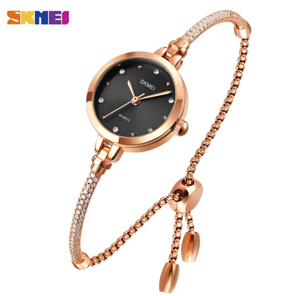 Роскошные женские часы SKMEI 2021, повседневные женские часы с браслетом стразы, декоративные водонепроницаемые кварцевые часы 1805