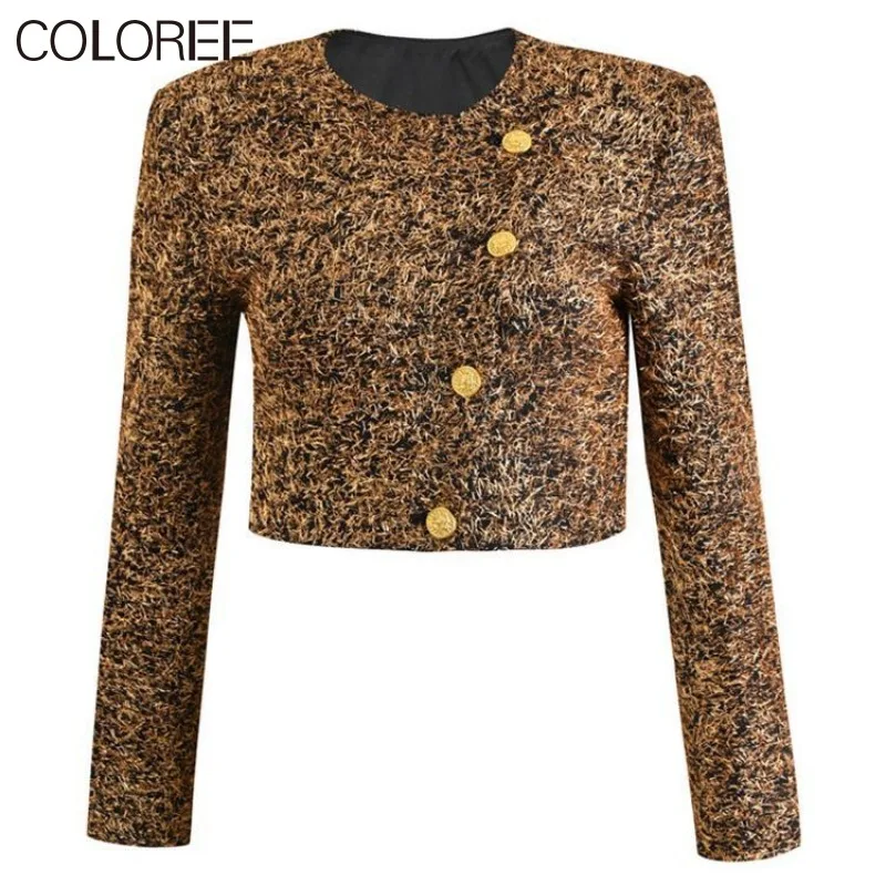 Роскошные золотые куртки для женщин 2023 модные дизайнерские короткие женские куртки с круглым вырезом в Корейском стиле Осень