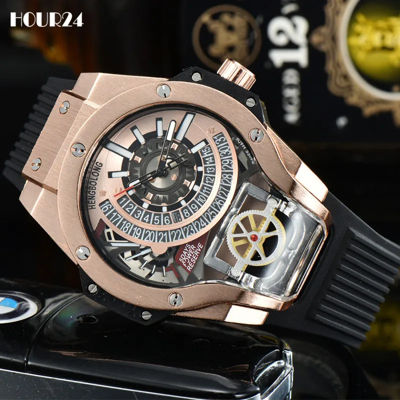 Роскошные мужские часы, полностью резиновые часы, стальные модные креативные мужские наручные часы с большим циферблатом, крутые мужские ч...