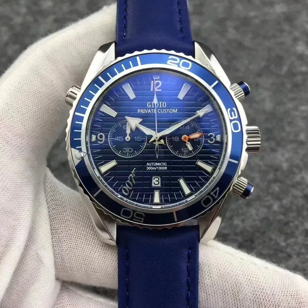 Роскошные новые мужские кварцевые часы-хронограф из нержавеющей стали черные синие резиновые кожаные часы 007