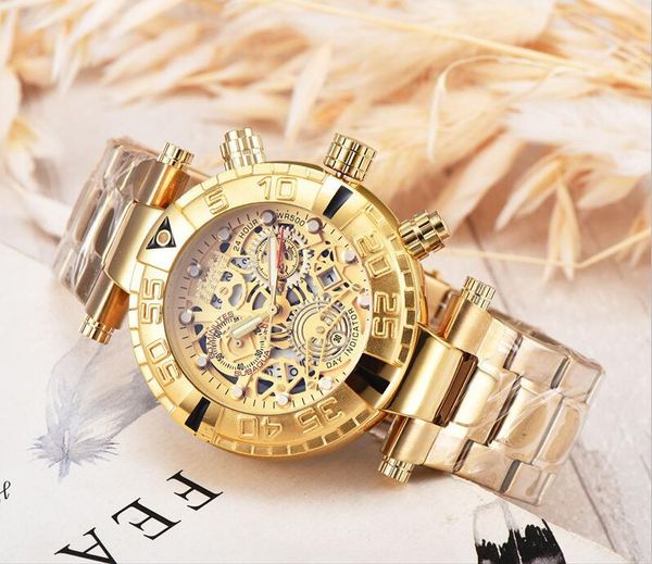 Роскошные новые мужские спортивные кварцевые часы Invicta Мужские золотые часы Big Face