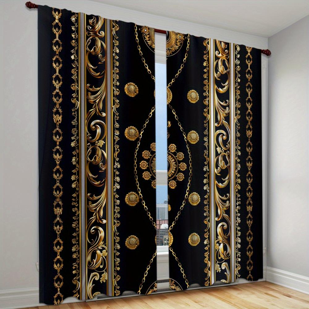 Роскошные полузатемняющие шторы, комплект из 2 шт., с золотым геометрическим принтом, карманом для штанги, машинная стирка, для спальни, гостиной, офиса 100W130H(CM)&Rod Pocket