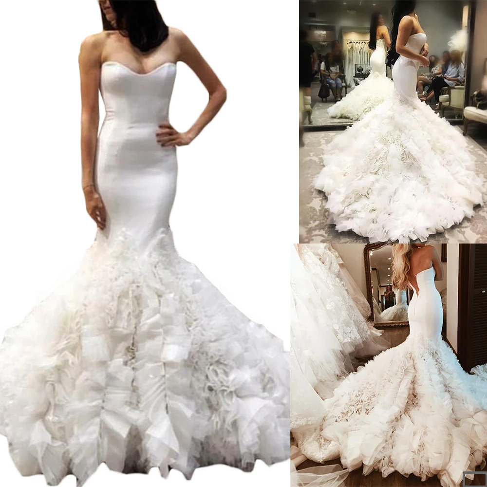 Роскошные свадебные платья-русалки, кружевные свадебные платья с аппликацией в виде сердечек, сексуальное свадебное платье с открытой спиной и шлейфом на заказ