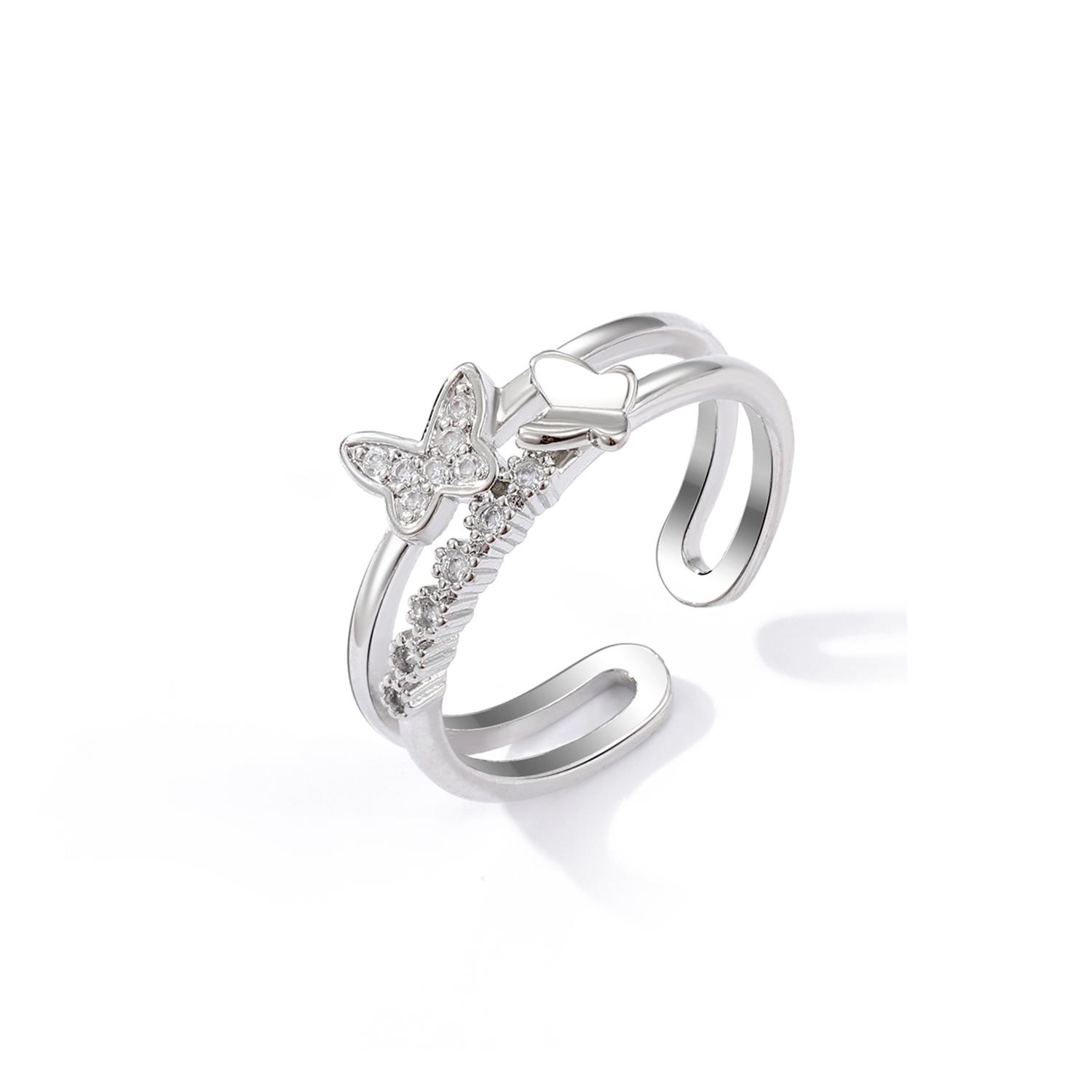 Роскошные серебряные гламурные блестящие кольца для девочек, милые открытые одинаковые кольца с бабочкой для пары, модные элегантные двухслойные полые кольца 16252