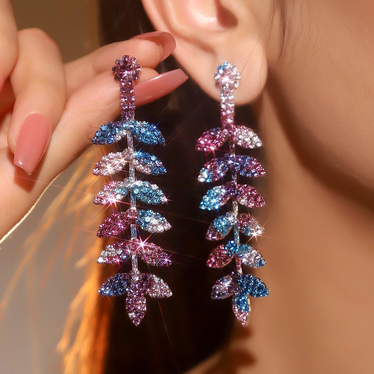 Роскошные серьги в форме листа со стразами цвета супер вспышки, модные серьги в стиле темперамент, женские серьги, 1 пара