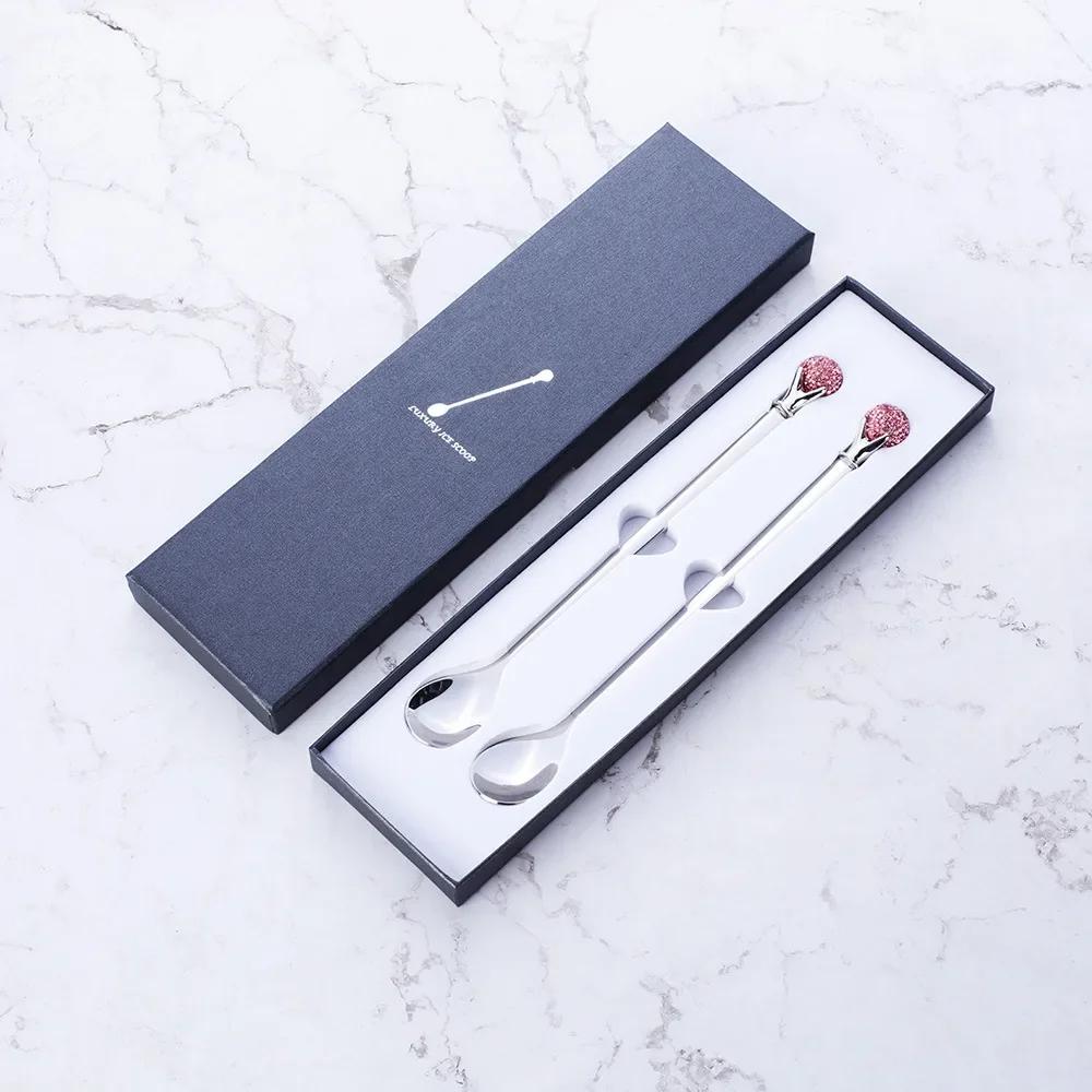 Роскошные 2 шт. Нержавеющая сталь Кофейная ложка Чайная ложка Длинная Мороженое Десертные Ложки Размешивания Свадебные Подарки Посуда в Подарочной Коробке розовый