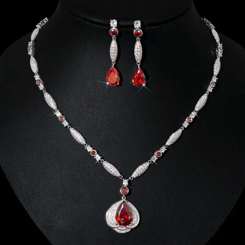 Роскошный бренд AAA кубические циркониевые медные серьги ожерелье капли воды кулон Свадебные Ювелирные наборы женские свадебные подарки дл...
