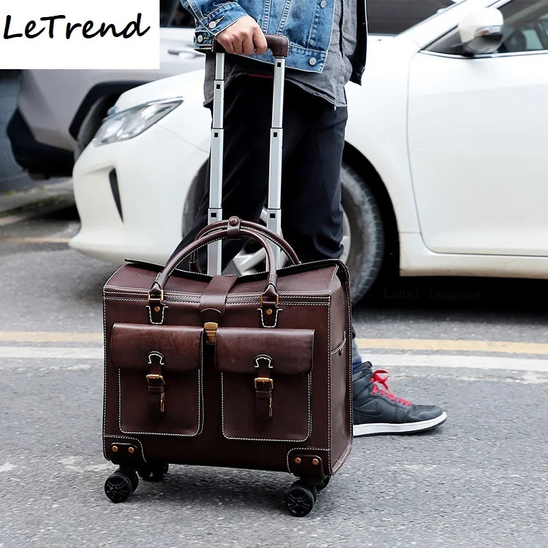 Роскошный дизайнерский чемодан на колесиках из натуральной кожи, 19 дюймов