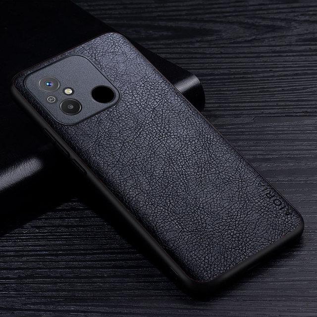 Роскошный кожаный чехол для Xiaomi Redmi 12C Премиум в деловом стиле, задняя крышка с узором личи в стиле ретро для Xiaomi Redmi 12c, чехол для телефона Redmi 12C чёрный
